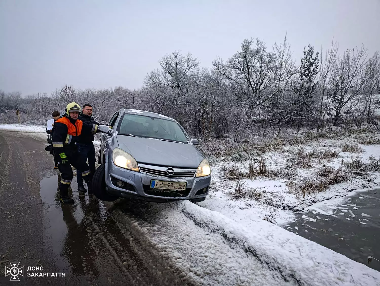 Рятувальникам знадобилося кілька хвилин, щоб витягнути автомобіль на проїжджу частину дороги. Постраждалих немає.